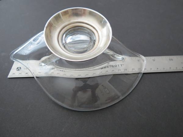 A very nice mid-century glass divided candy or condiment dish with sterling silver base.